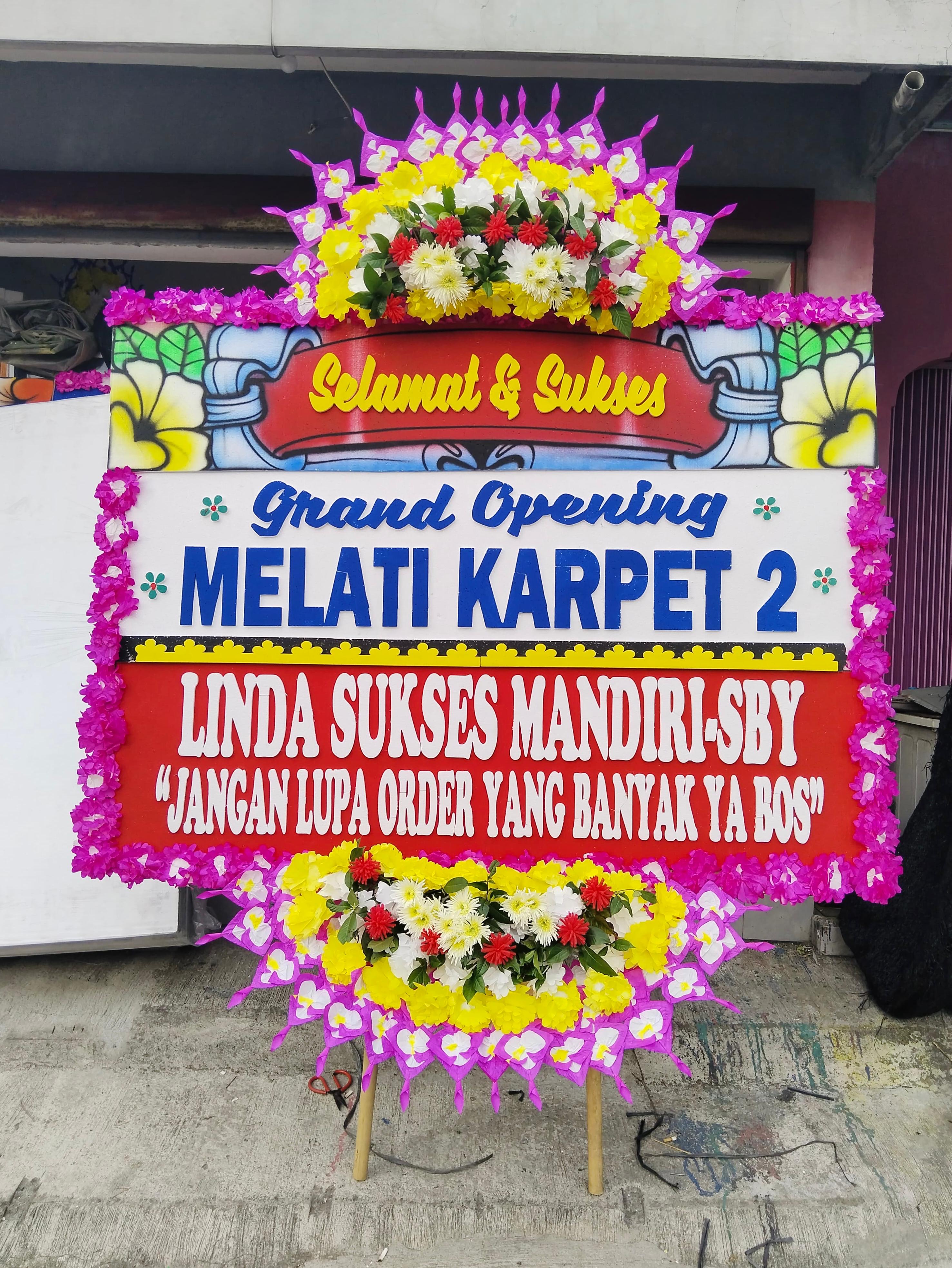 – Karangan bunga papan ukuran 2M × 1,5M.