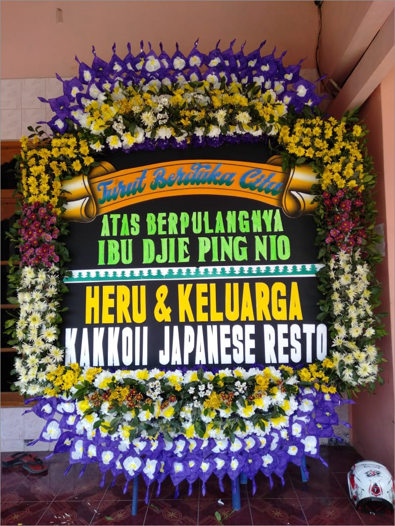 – Karangan bunga papan ukuran 2 × 1,5M.