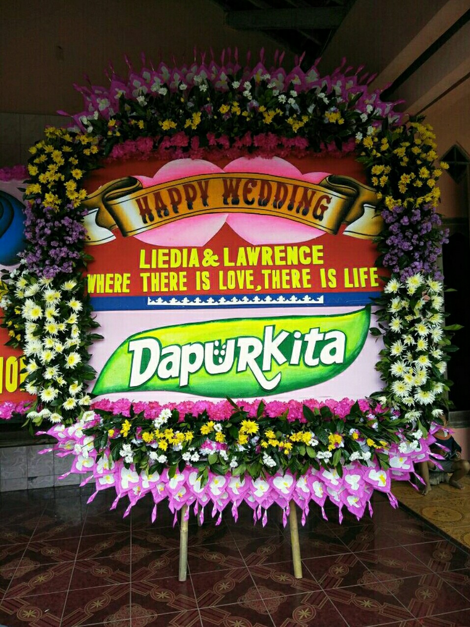 – Karangan bunga papan ukuran 2 × 1,5M.