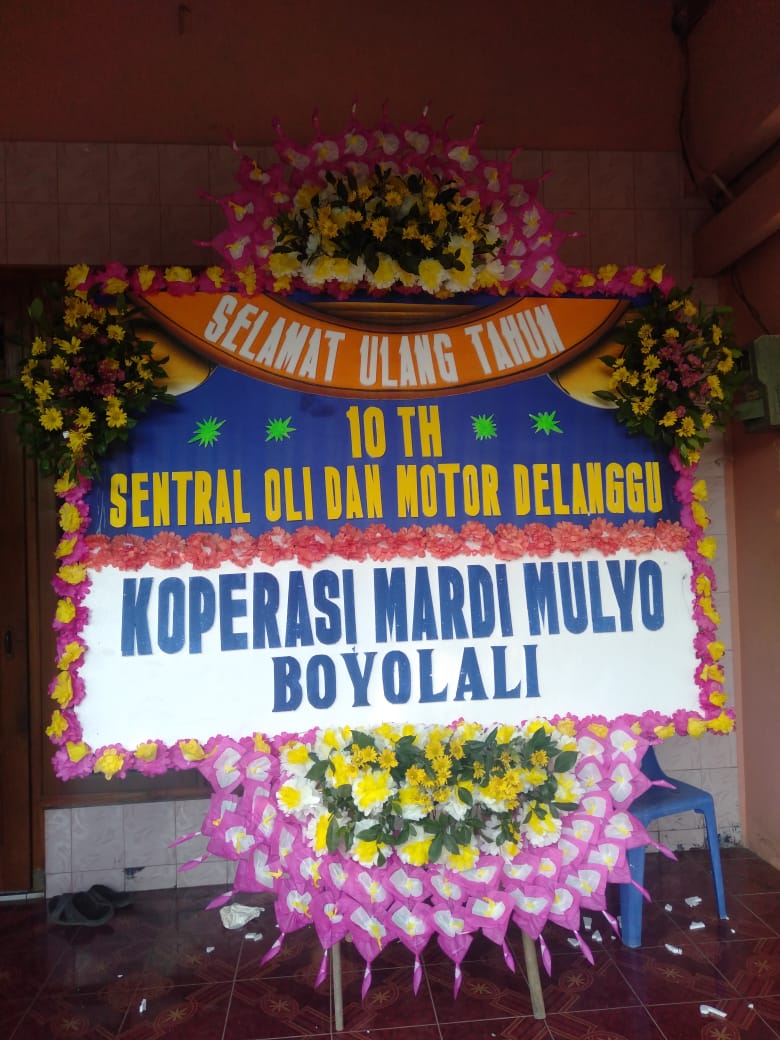 – Karangan bunga papan ukuran 2 × 1,25m.