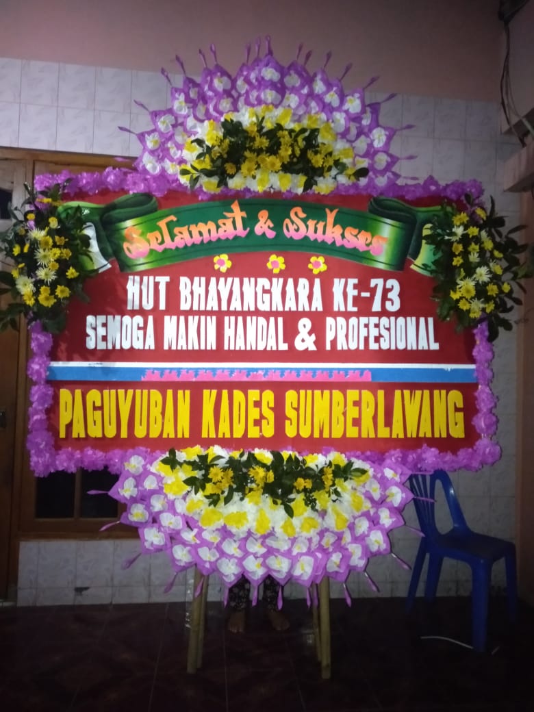 – Karangan bunga papan ukuran 2 × 1,25m.